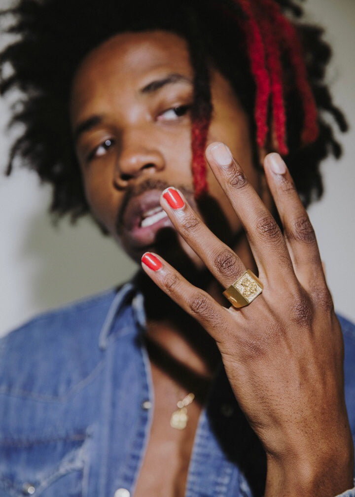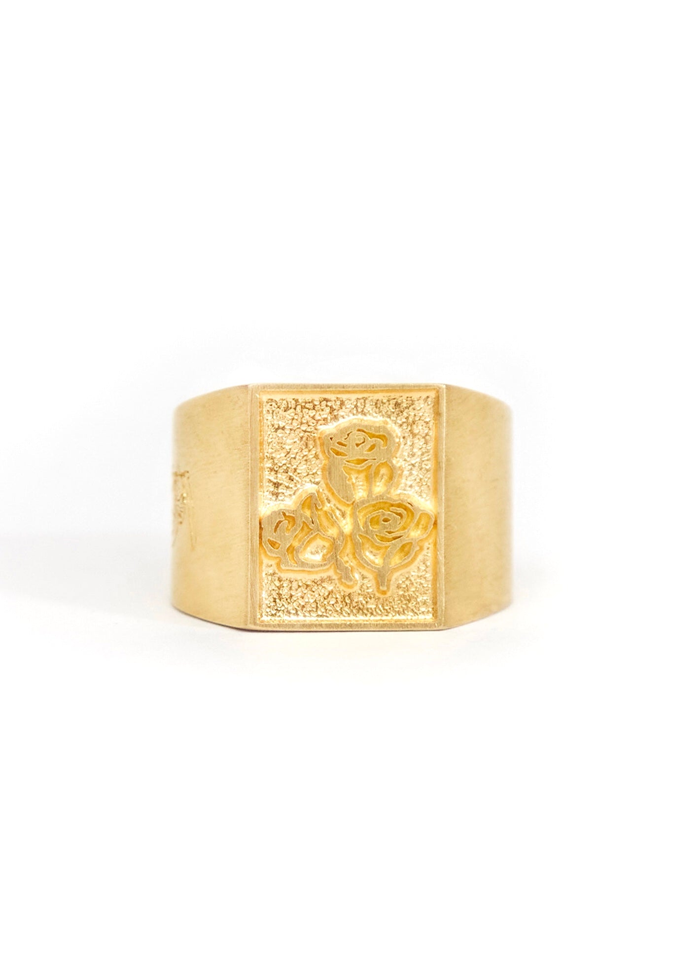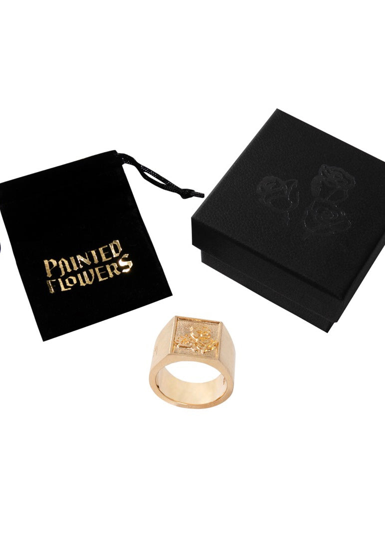 Our classic three rose ring available in Gold plated 925 silver. Mens size 10.